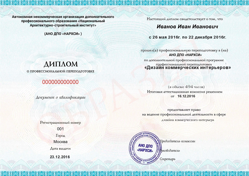 - Образец диплома о профессиональной переподготовке.