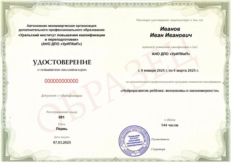 - Повышали квалификацию в АНО ДПО «УрИПКиП» – вам будет выдано удостоверение.